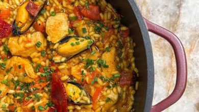 Cette paëlla festive signée Cyril Lignac, présentée dans Tous en Cuisine : Menus de fêtes, est un mélange savoureux de…